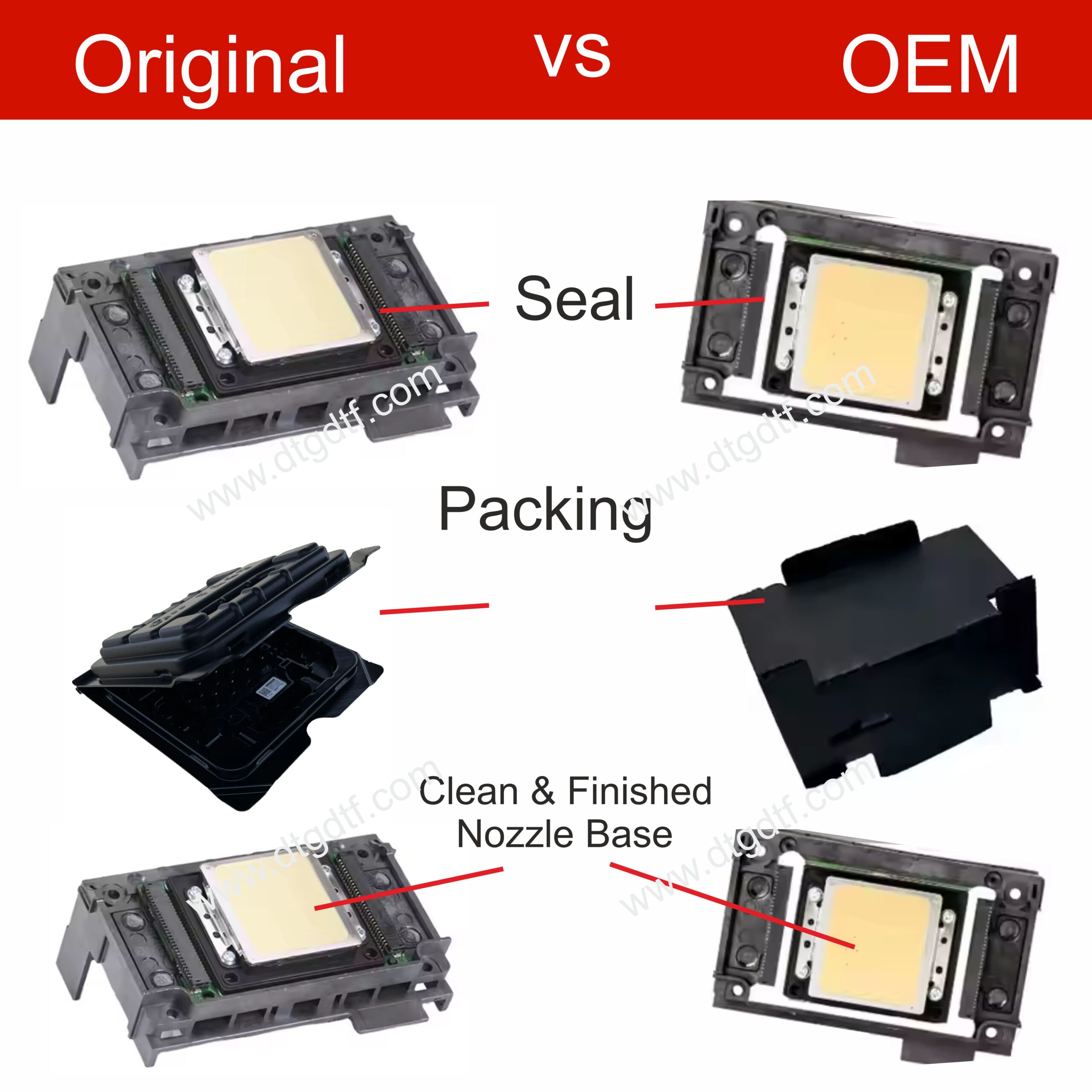 There is no warranty or guarantee on this head. While it functions like the original and fits the same machines, color vibrancy and head life are comparatively lower than the Epson Original XP600.